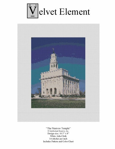 Cross-stitch pattern of "The Nauvoo TempleÓ. Original image © Intellectual Reserve, Inc., used by permission. Design size: 10.5Ó x 8Ó. White Aida Cloth. 14 stitches per inch. Includes Pattern and Color Chart.